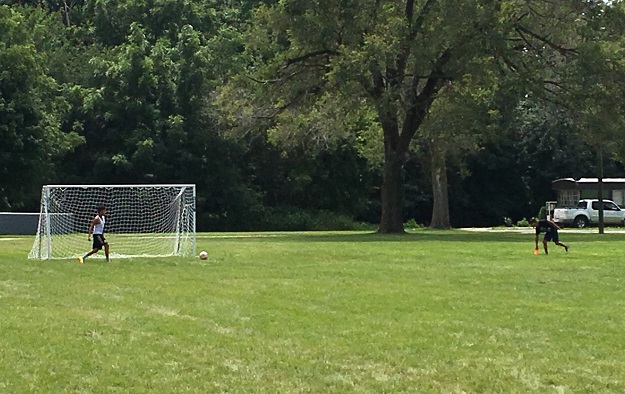 Playground & field with soccer nets